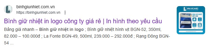 Bước 2:Tìm kiếm từ khóa: bình giữ nhiệt in logo giá rẻ