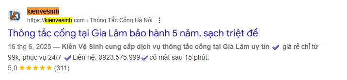 Bước 2:Tìm kiếm từ khóa: Thông tắc cống tại Gia Lâm