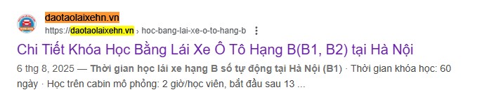 Bước 2:Tìm kiếm từ khóa: học bằng lái xe B hà nội