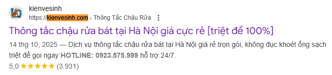 Bước 2:Tìm kiếm từ khóa: Thông tắc chậu rửa bát tại Hà Nội
